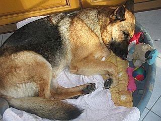 Mein Hund ist jetzt 5 Jahre alt. Es ist ein ganz besonderer Schäferhund, denn für einen Schäferhund ist er sehr lieb, hat einen guten Charakter und ist sehr anhänglich, mit Raufbolden läßt er sich nicht so gerne ein, aber wenn ihn jemand ärgert, dann wird er schon mal böse (das bezieht sich aber nur auf Hunde), denn anderen Menschen gegenüber verhält er sich ruhig, man kann sagen er ignoriert sie sogar.